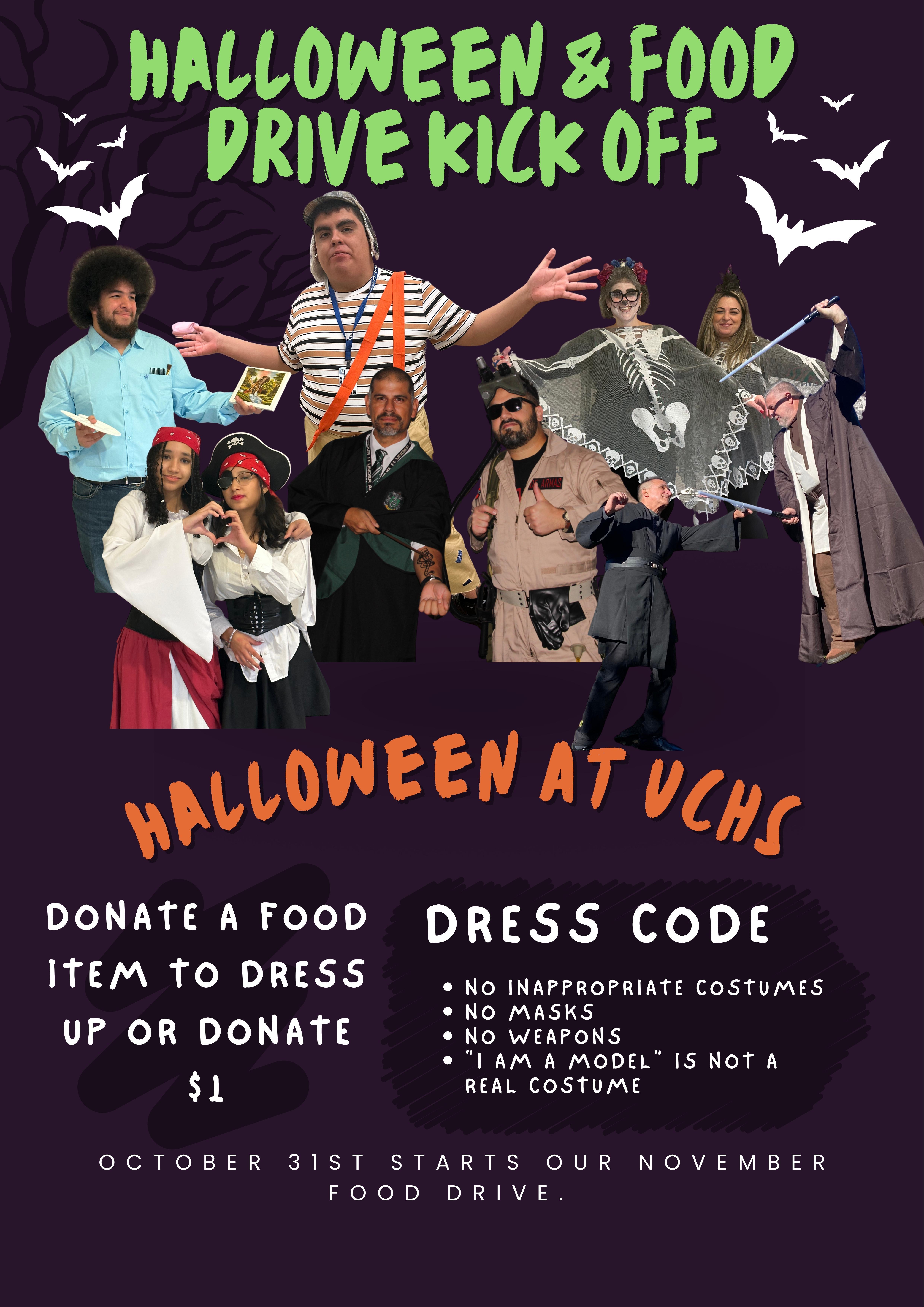 Si los estudiantes planean disfrazarse, deben donar 1 dólar o un alimento enlatado.