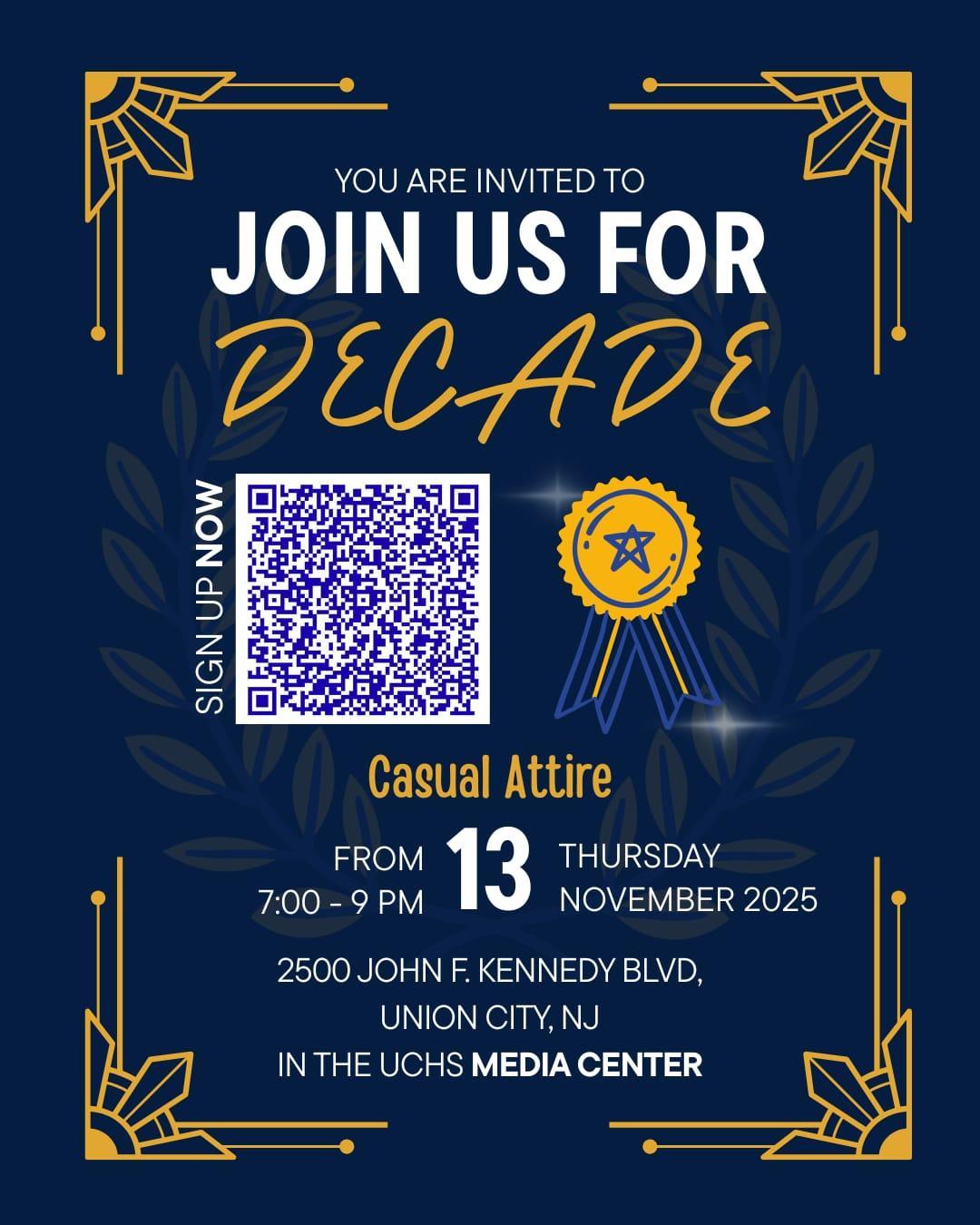 Union City High School is hosting DECA “DECADE” Alumni Night, where former DECA students from Union City High School and the José Martí STEM Academy will return to speak about their college, career, and business journeys. Many are now successful entrepreneurs, business owners, and professionals. They will also talk about how DECA and working in the school store helped them build real skills and open doors.
